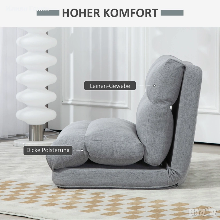 Здрава опора: Оборудван с метална рамка, този диван тип „мързелив“ предлага надеждна опора за ежедневна употреба и може да издържи натоварвания до 120 кг.