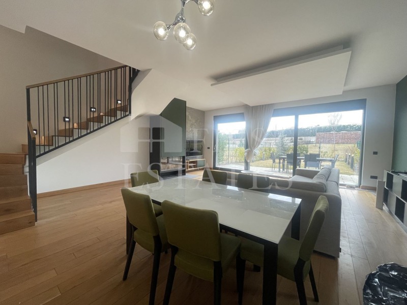 First Estates би искал да ви представи тази къща с 4 спални в затворен комплекс в Малинова долина, вилна зона. Затвореният комплекс разполага с 24-часова охрана и обща детска площадка, баскетболно-футболно игрище и волейболно игрище. Това е рай за млади и стари. На пешеходно разстояние има всички удобства, като магазини, пекарни, фитнес зала с вътрешен басейн, супермаркет и др. На 15 минути пеша се намира метростанцията, а автобусните спирки са точно до комплекса.