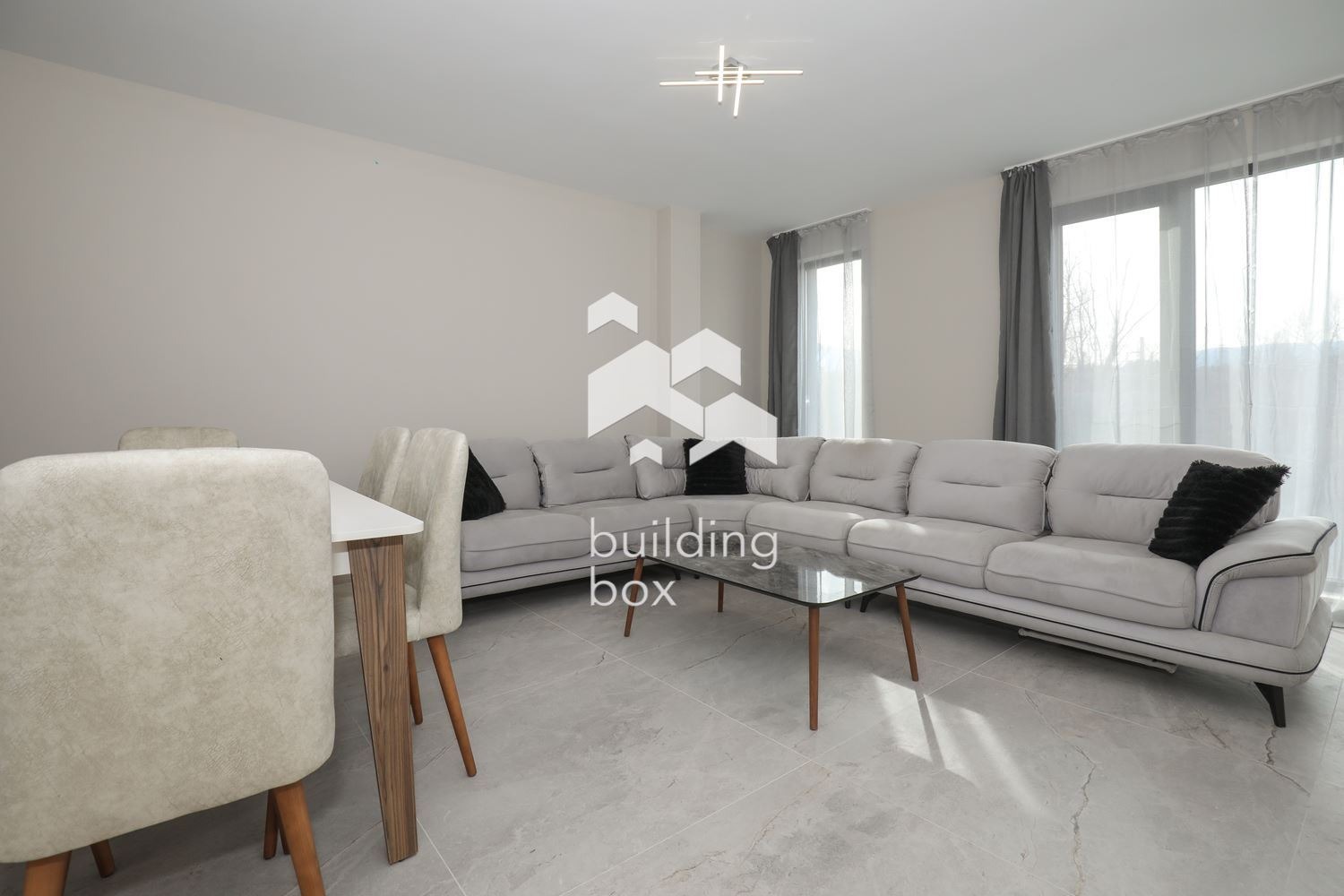 - Просторна дневна с трапезария, кухненски бокс и балкон;