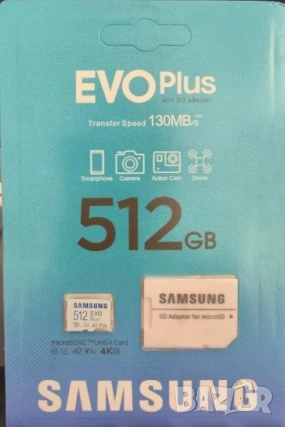 Подарък чисто нова микро сд карта SAMSUNG microSD EVO PLUS 512GB Class (10), 4K Ultra HD Read up to 130MB/s