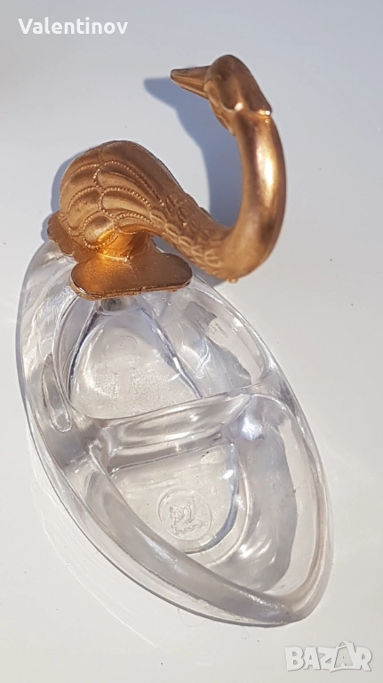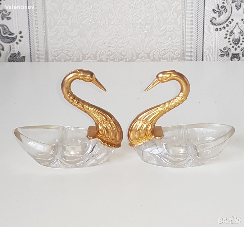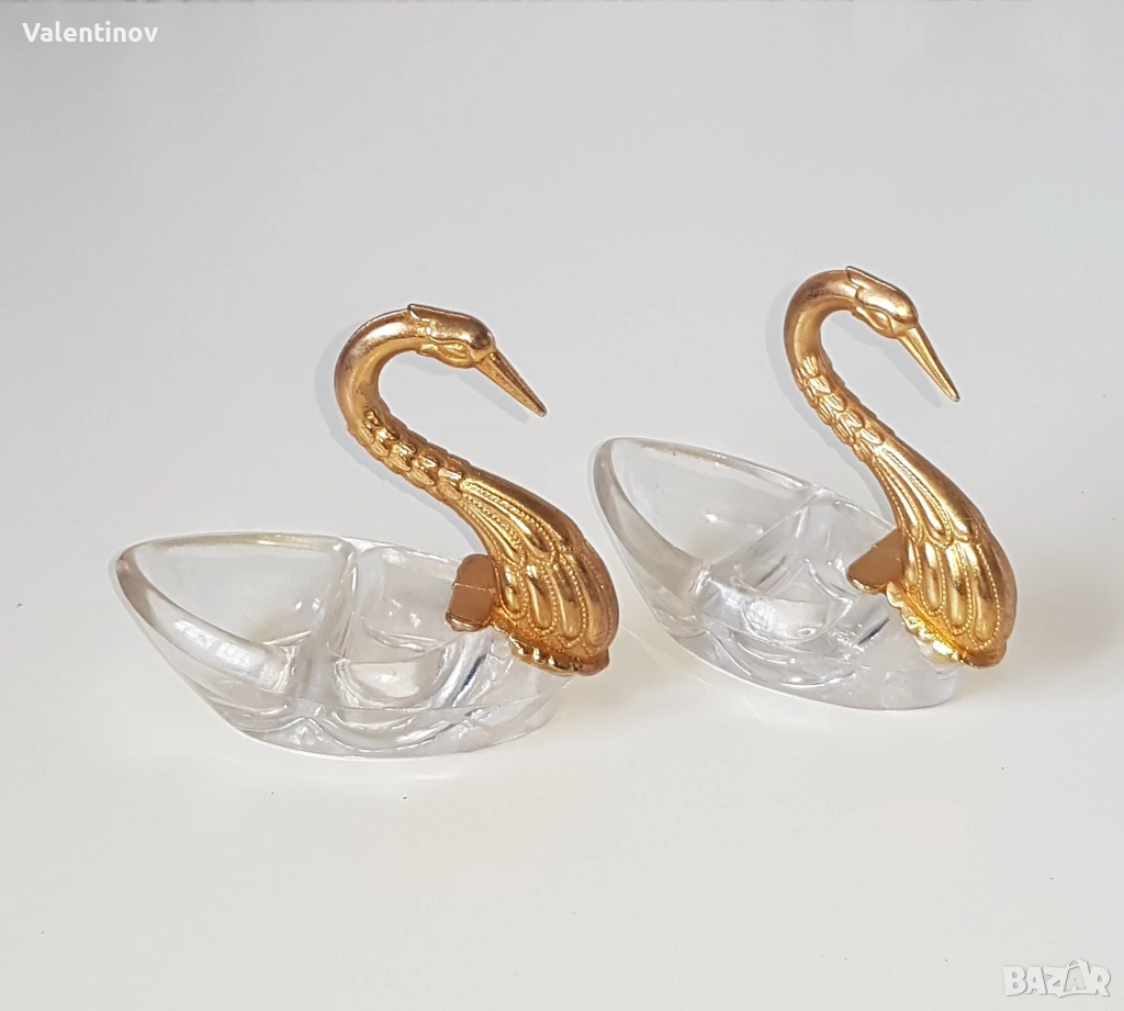 Две старинти солнички- лебеди, златистата част е метална, солничката- от резин. Всяка от тях разполага с по 2 отделения.