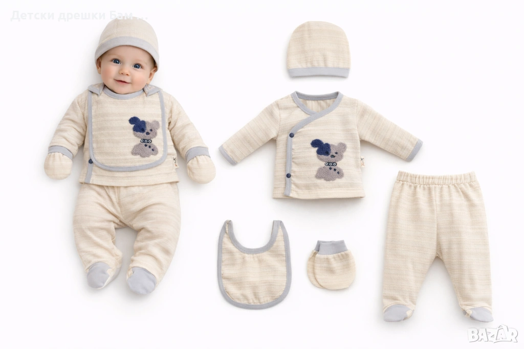 Бебешки комплект за новородено 5 части с мече
