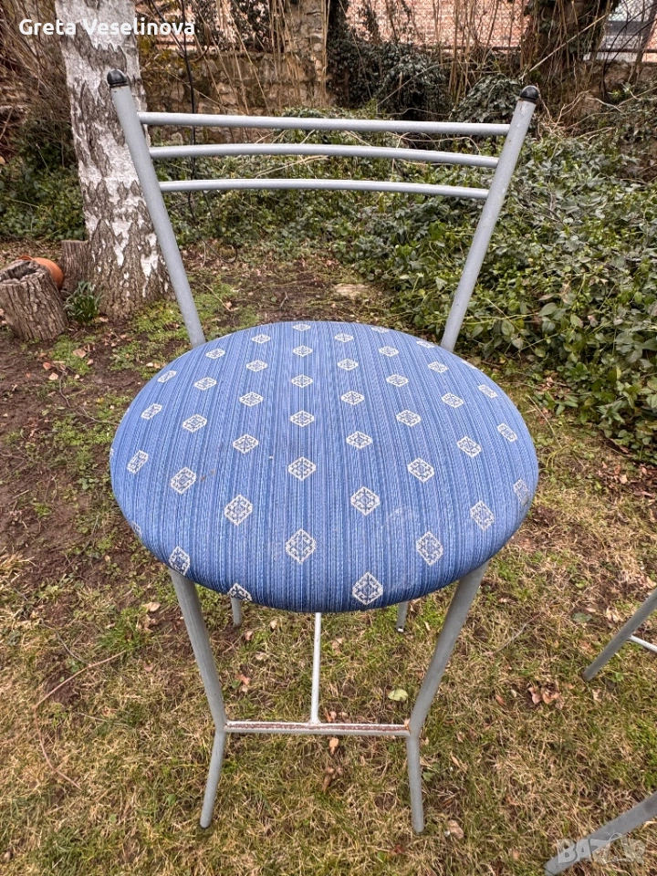 3 метални бар стола с тапицерия, снимка 1 - Столове - 53466427 3 метални бар стола с тапицерия, снимка 2 - Столове - 53466427 3 метални бар стола с тапицерия, снимка 3 - Столове - 53466427 1/3