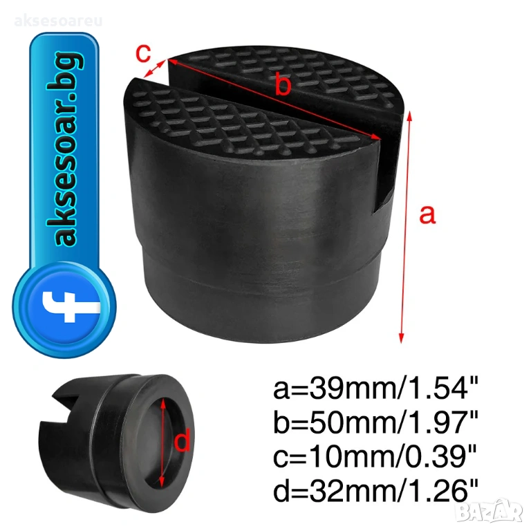 Гумена подложка за повдигане на автомобилен крик с шлиц,