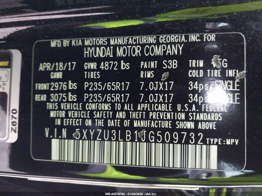 5XYZU3LB1JG509732
