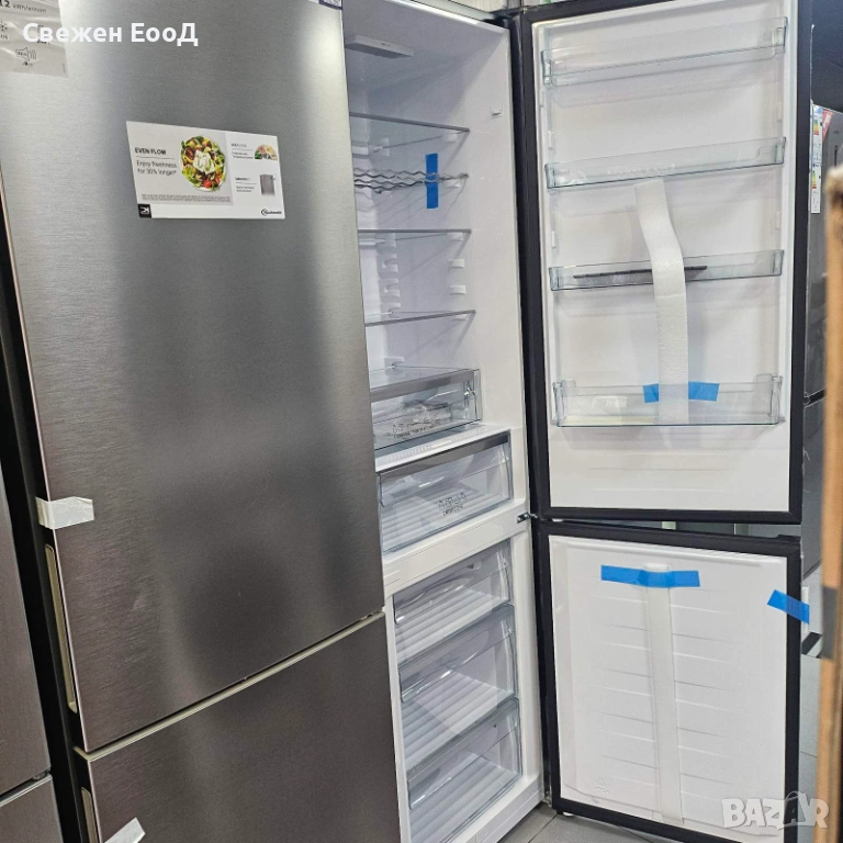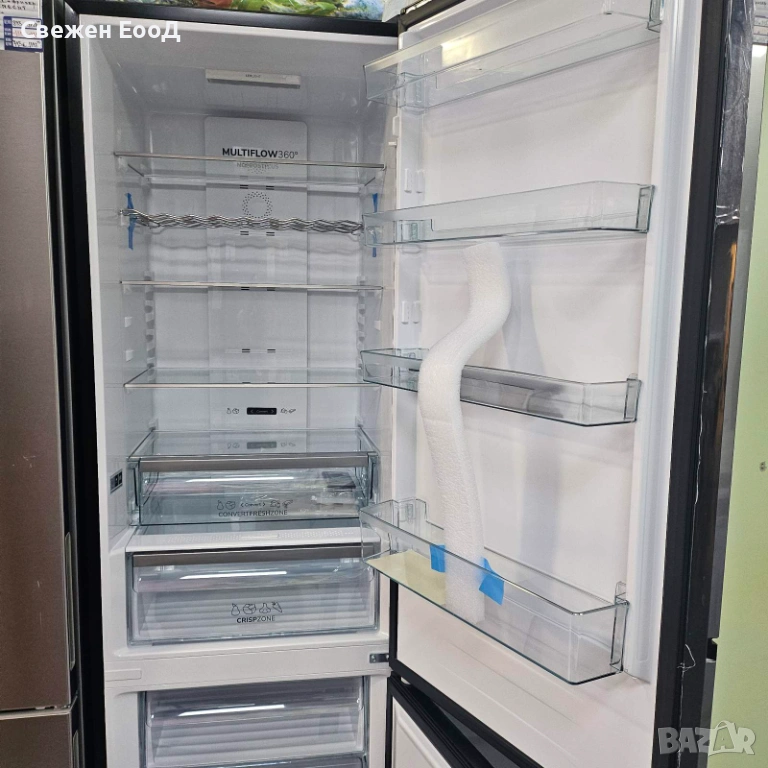 Инверторен компресор: инверторните компресори са по-тихи, по-издръжливи и консумират по-малко енергия от конвенционалните компресори. Те се адаптират по-добре и по-бързо към температурните промени в хладилника, например при отваряне на вратата. Това означава по-малко температурни колебания и по-добри условия за съхранение на храната Ви.