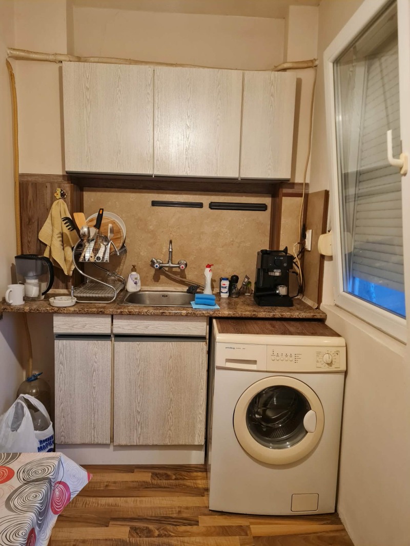 Предлагаме апартамент с отлична локация - идеален център, комуникации - до р-т Централ, много търговски обекти, административни сгради, спирки на градски транспорт, детска градина, училище и до много други точки на града. Маломерен двустаен преустроен на кухненски бокс с трапезария, обособени са две спални, коридор, баня и тоалетна заедно, тераса с излаз от двете стаи. Отопленето е централен тец, с прилежащо избено помещение, удобен паркинг за живущите.
