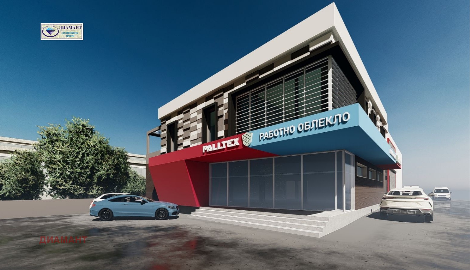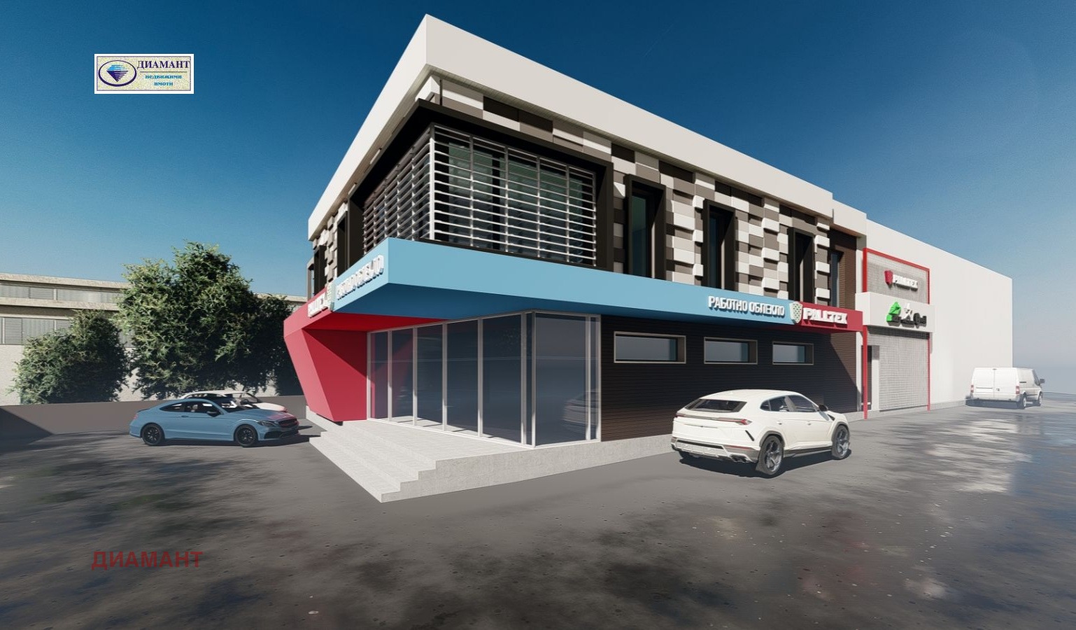 Предлагаме търговска сграда - предстоящ строеж, състояща се от магазин 300 кв.м., офис 100 кв.м. и склад 300 кв.м.. Договор за наем минимум пет години. Сградата разполага с голям паркинг. Срок на завършване 10 месеца. При сключване на договор за наем в настоящия момент е възможно промяна на разпределението на площите. Близостта на сградата до главни улици я прави подходяща за супермаркет, представителен шоурум и др. дейности.