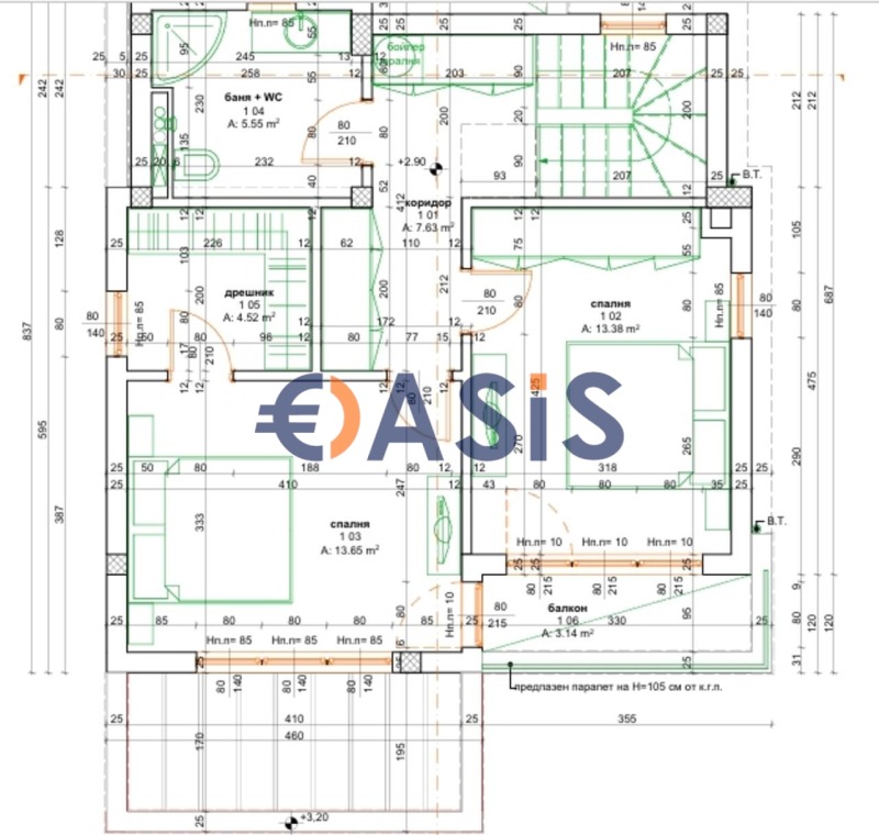 2-ри етаж : коридор , две спални ,баня с тоалетна,съблекалня ,тераса .