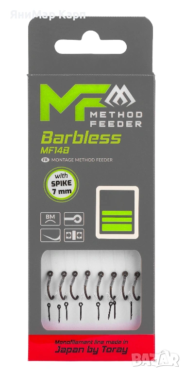 Готови монтажи Mikado MF Rig MF14 with Spike Barbless Hooks Monoline 0.28mm / 10cm – 8 pcs. са висококачествени, фабрично вързани монтажи, създадени специално за ефективен Method Feeder риболов.