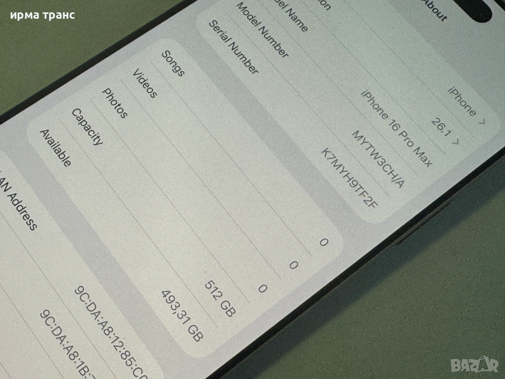 iPhone 16 Pro Max 512gb 93% батерия.Гаранция, снимка 1 - Apple iPhone - 53467131 iPhone 16 Pro Max 512gb 93% батерия.Гаранция, снимка 2 - Apple iPhone - 53467131 iPhone 16 Pro Max 512gb 93% батерия.Гаранция, снимка 3 - Apple iPhone - 53467131 iPhone 16 Pro Max 512gb 93% батерия.Гаранция, снимка 4 - Apple iPhone - 53467131 iPhone 16 Pro Max 512gb 93% батерия.Гаранция, снимка 5 - Apple iPhone - 53467131 iPhone 16 Pro Max 512gb 93% батерия.Гаранция, снимка 6 - Apple iPhone - 53467131 iPhone 16 Pro Max 512gb 93% батерия.Гаранция, снимка 7 - Apple iPhone - 53467131 iPhone 16 Pro Max 512gb 93% батерия.Гаранция, снимка 8 - Apple iPhone - 53467131 iPhone 16 Pro Max 512gb 93% батерия.Гаранция, снимка 9 - Apple iPhone - 53467131 1/9