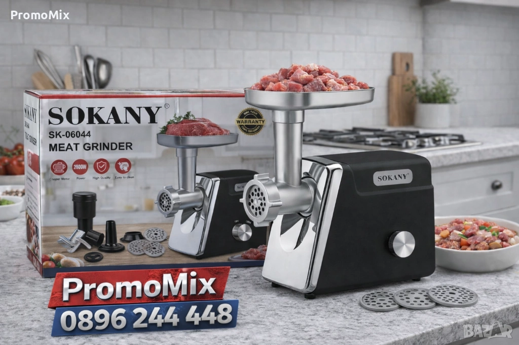 Sokany SK-06044 е електрическа месомелачка с мощност 2800 W, предназначена за бързо и лесно смилане на месо.