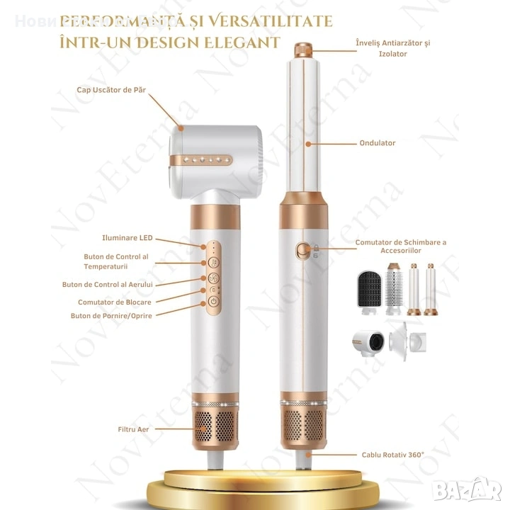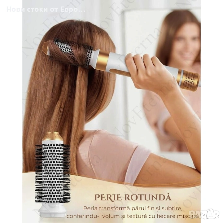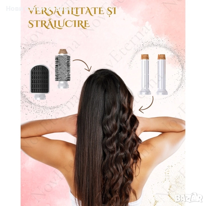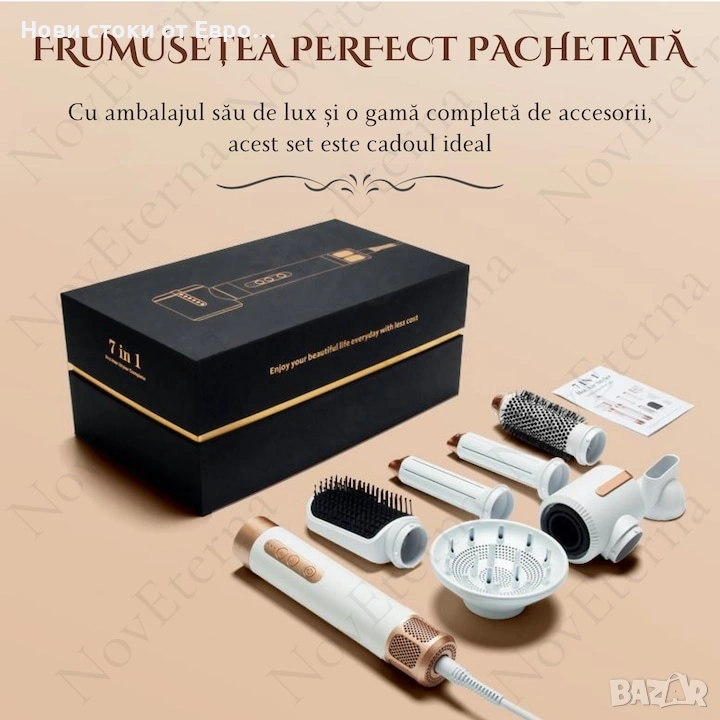 С комплекта NovEterna 7 в 1 ви представяме не просто сешоар, а истинска фризьорска работилница във вашия дом . Този революционен комплект ви помага лесно да навигирате между различните стилове, превръщайки грижата за косата в приятно и ефективно изживяване.