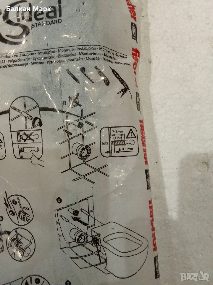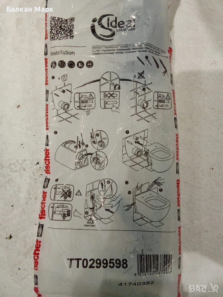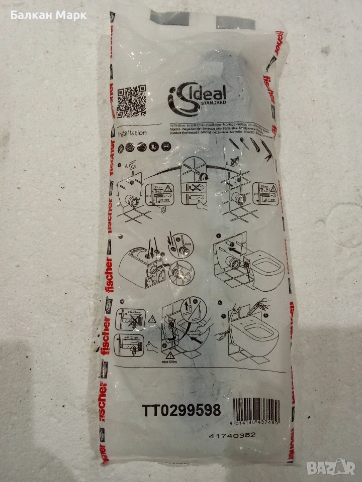 Продавам оригинален монтажен комплект за скрит монтаж на стенна (конзолна) тоалетна чиния. Продуктът е произведен от лидера в крепежните елементи Fischer специално за санитарната марка Ideal Standard.