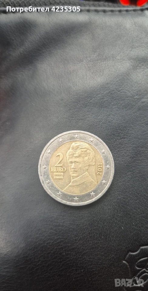 Две евро със изображението на Bertha von Suttner от Австрия 2011г.
