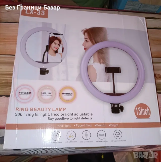 Нова LED Ring Light LX-33 – 13” Ринг лампа с трицветна светлина и стойка за телефон