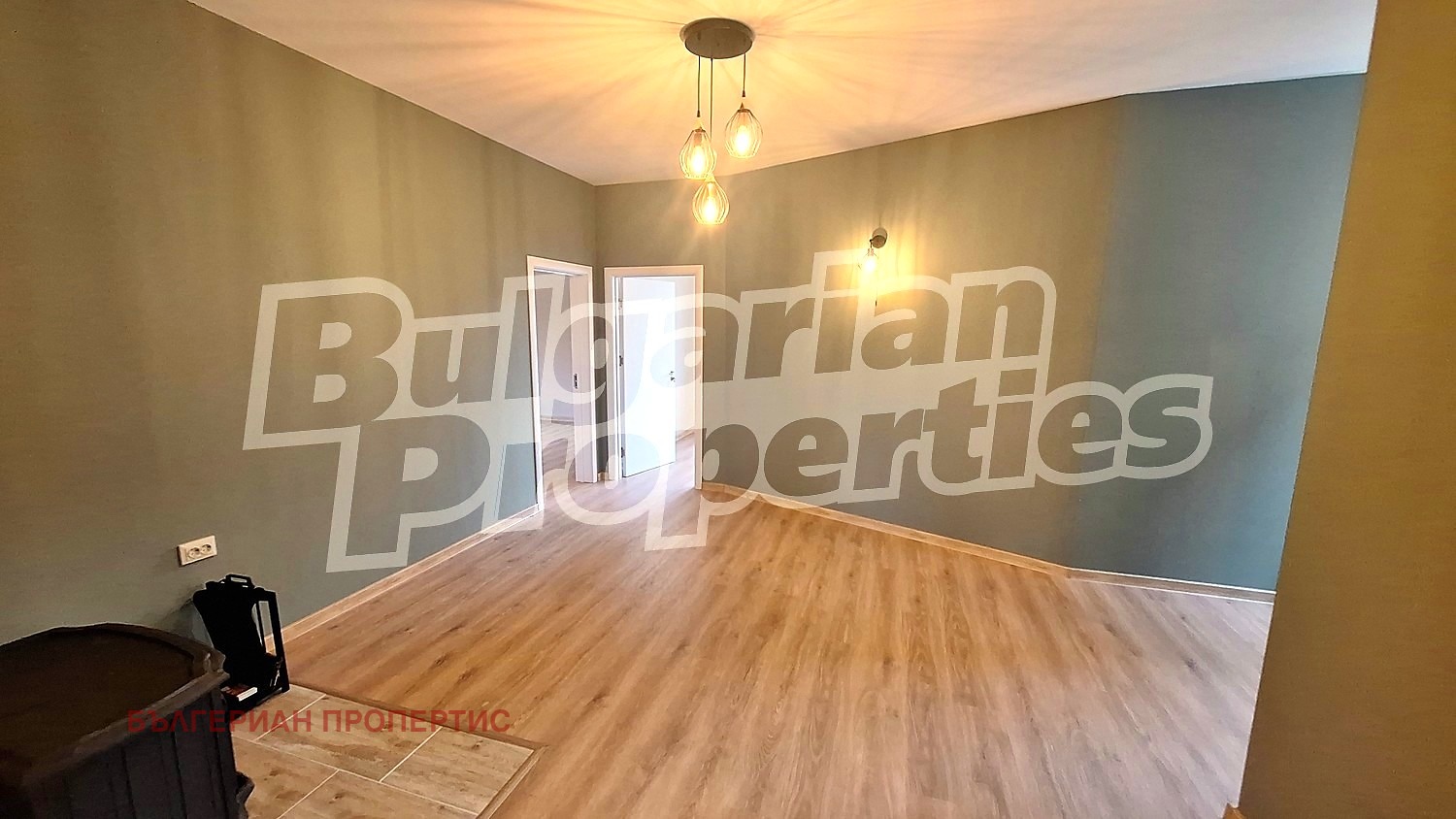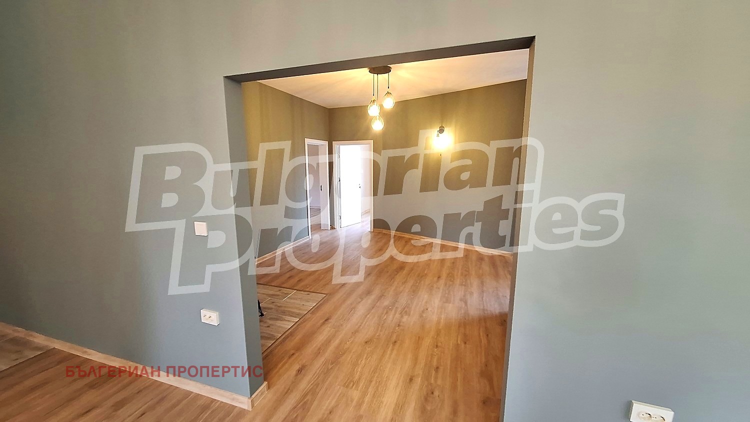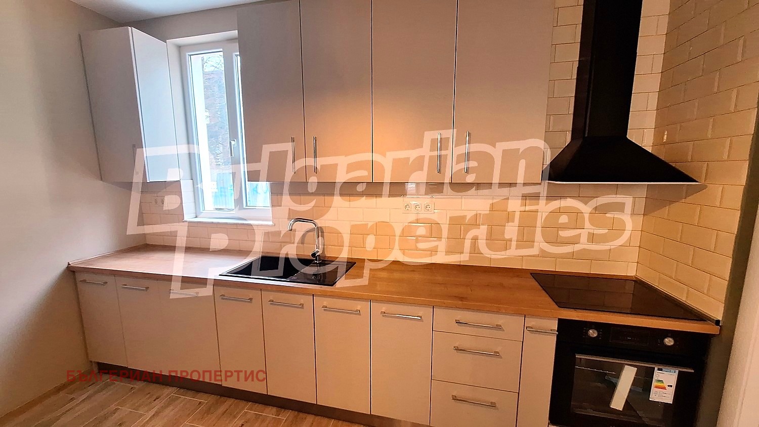 Имотът е в отлично състояние и предлага функционално разпределение с просторна дневна зона с кухненски бокс, две спални и санитарно помещение. Вътрешните стени са боядисани, подовите настилки са с ламиниран паркет, което придава уют и завършен вид на помещенията. Кухнята е с вградени шкафове и оборудване, готова за ползване, а банята е напълно оборудвана.