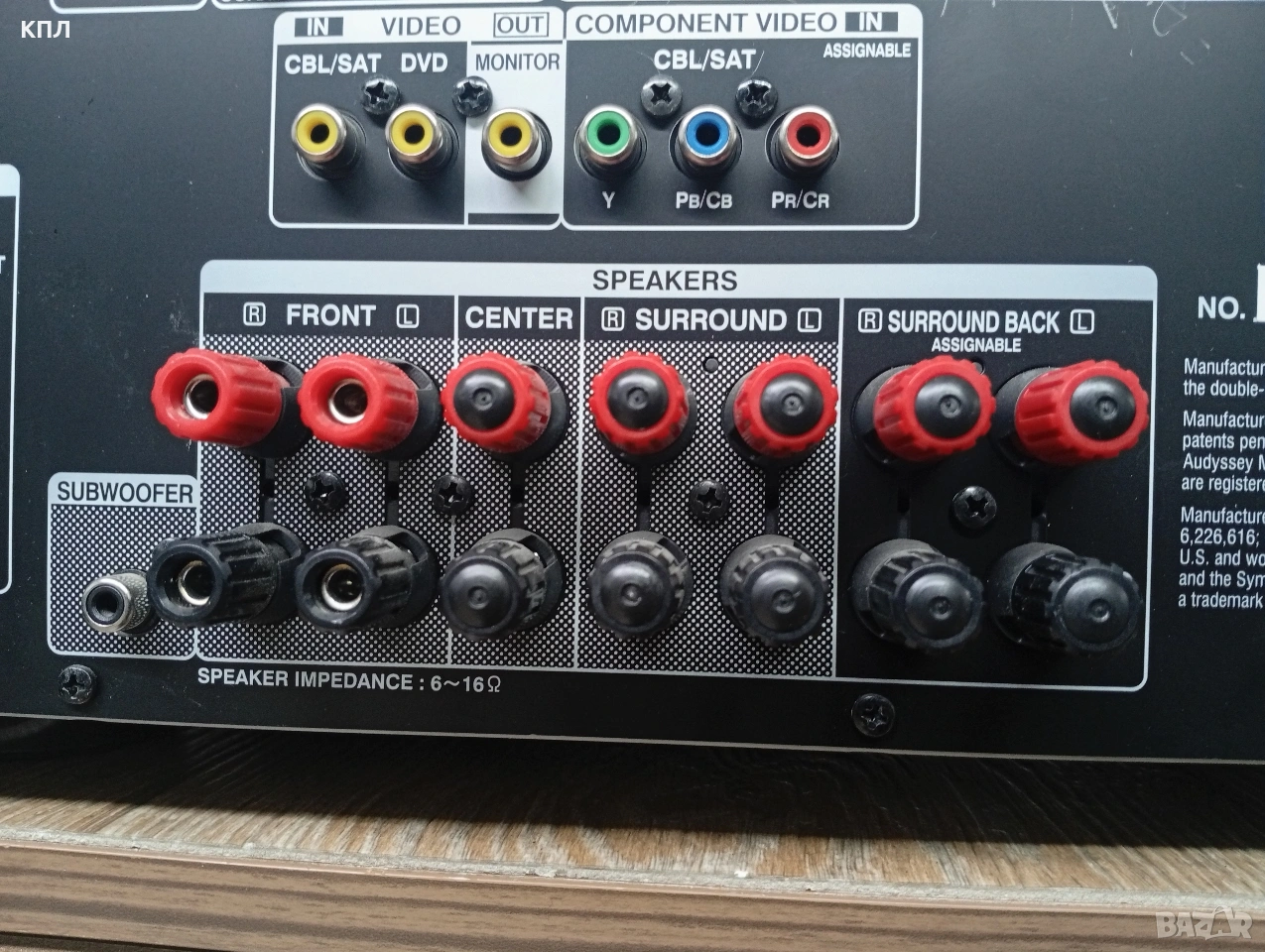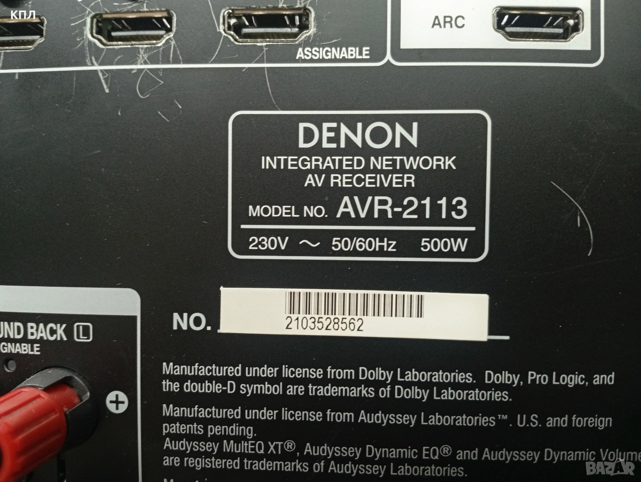 Продавам Denon 2113 7.1-канален мрежов AV ресивър, който предлага HD аудио/видео изживяване с функции като AirPlay, 4K видео скалиране в отлично състояние с множество входове и функции при интерес може да се види и тества на място. Основни характеристики и спецификации Канали: 7.1-канален съраунд звук. Мощност: 95 W на канал (8 Ohm, 20Hz-20kHz, 0.05% THD) или 125 W на канал (6 Ohm, 1kHz, 0.7% THD). Видео поддръжка: Поддържа 3D и разполага с функции за 4K видео скалиране и passthrough. Аудио формати: Декодира формати като Dolby TrueHD, DTS-HD Master Audio, Dolby Pro Logic IIz и DTS Neo:6. Входове/Изходи: Разполага с общо 6 HDMI входа (1 на предния панел) и 1 HDMI изход, поддържащи Audio Return Channel (ARC). Мрежови функции: Включва Ethernet порт, AirPlay за стрийминг от Apple устройства и е DLNA 1.5 сертифициран за поточно предаване на съдържание от локална мрежа. Управление: Може да се управлява чрез включеното дистанционно или чрез безплатното приложение "Denon Remote App" за iOS и Android устройства. Лесна употреба: Включва асистент за първоначална настройка (Setup Assistant) с графичен интерфейс (GUI), който насочва потребителя през целия процес на свързване и калибриране на високоговорителите
