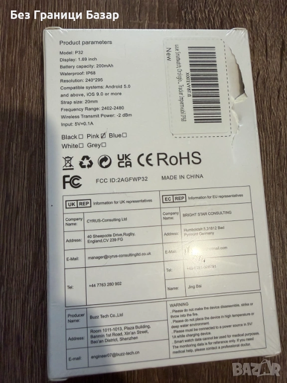 Модерен смарт часовник с 1.69-инчов цветен дисплей и стилен дизайн, подходящ за ежедневна употреба и спорт. Модел P32 предлага проследяване на активността и здравните показатели директно от китката ви.