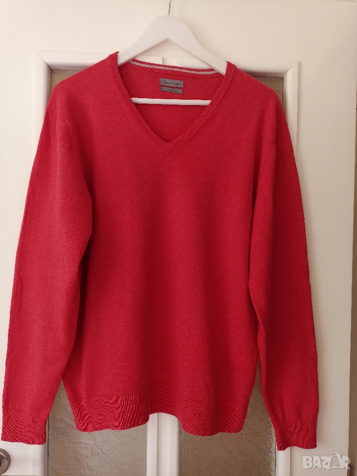 Червен мъжки пуловер от 100% памук.