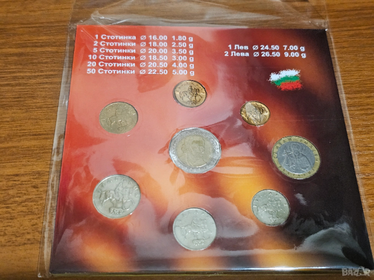 Колекция български монети 1 лев 2 лева 50 стотинки 20 стотинки 10 стотинки 5 стотинки 2 стотинки 1 стотинка опаковка за ценители и колекционери .