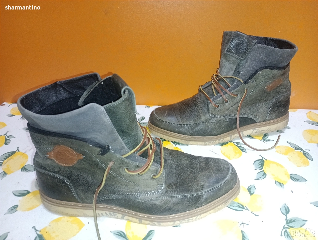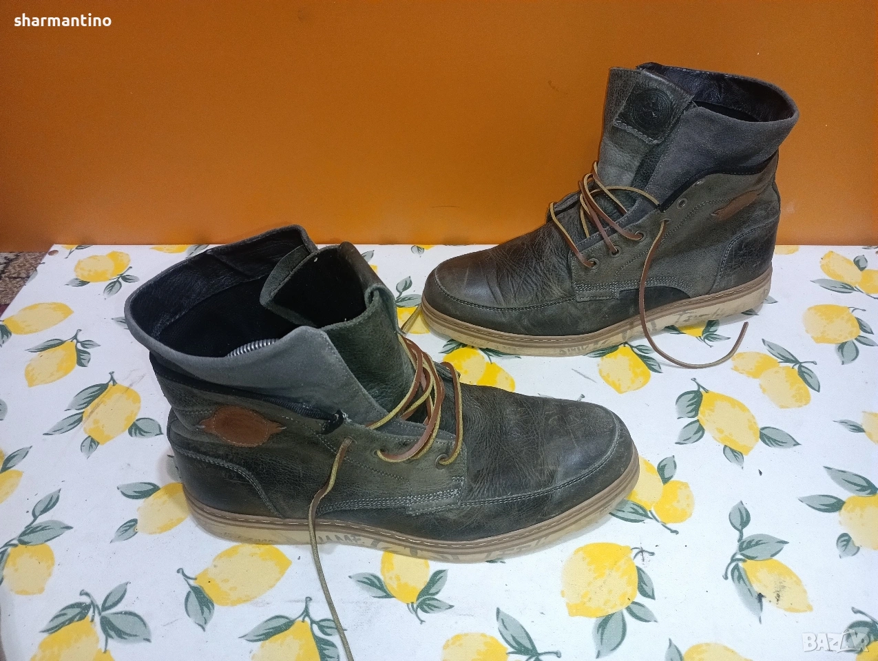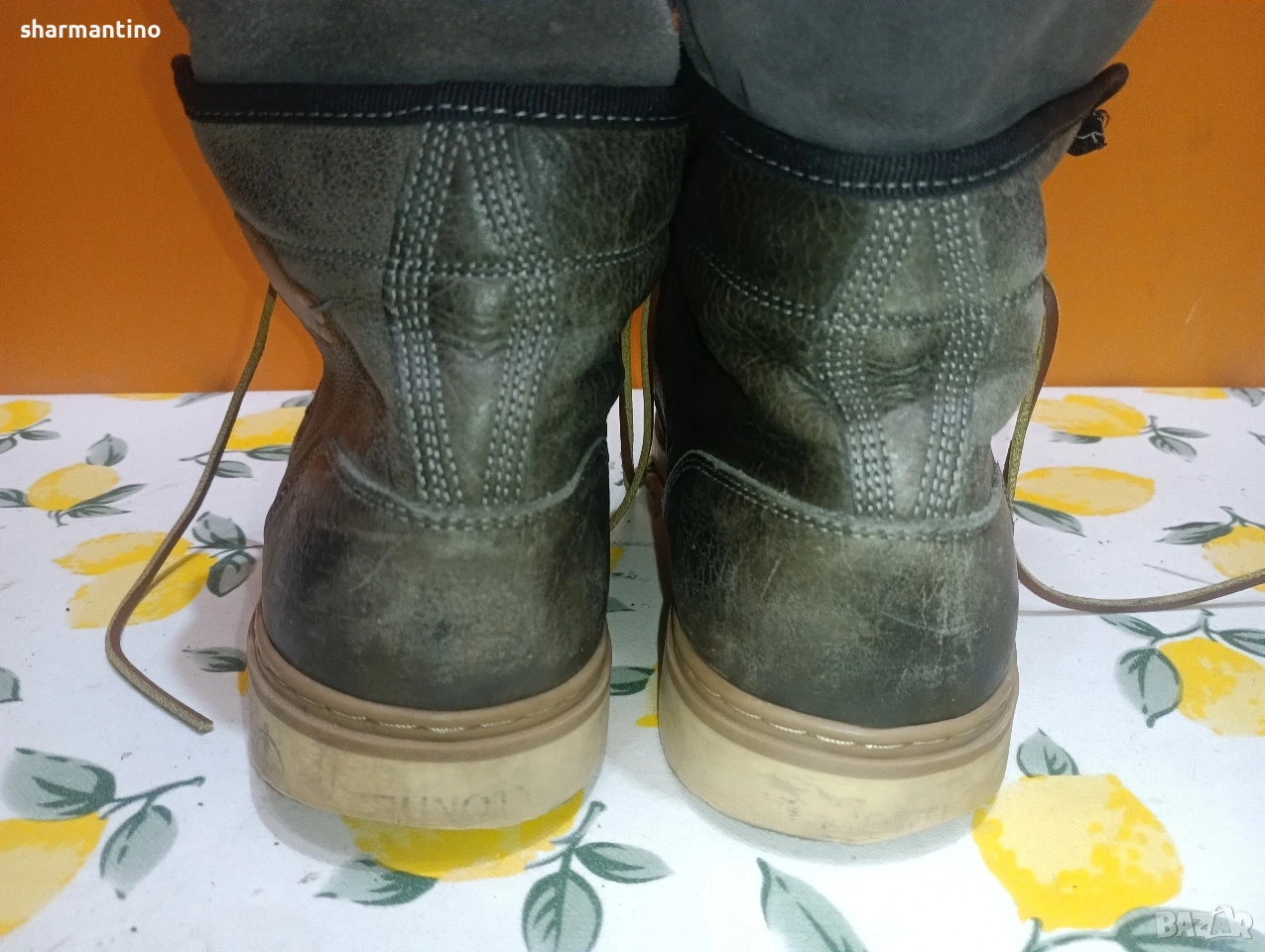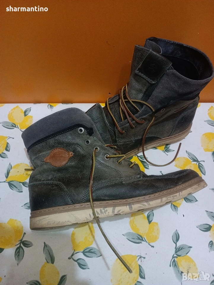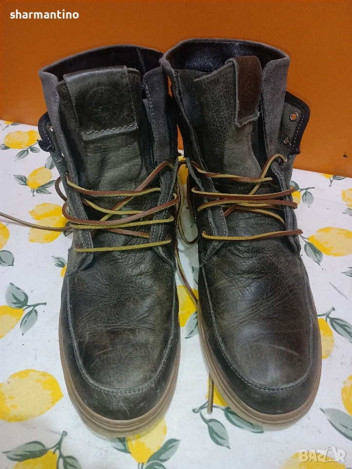* МАРКА/МОДЕЛ- маркови оригинални тъмно маслиново зелени високи кожени обувки Brunotti.