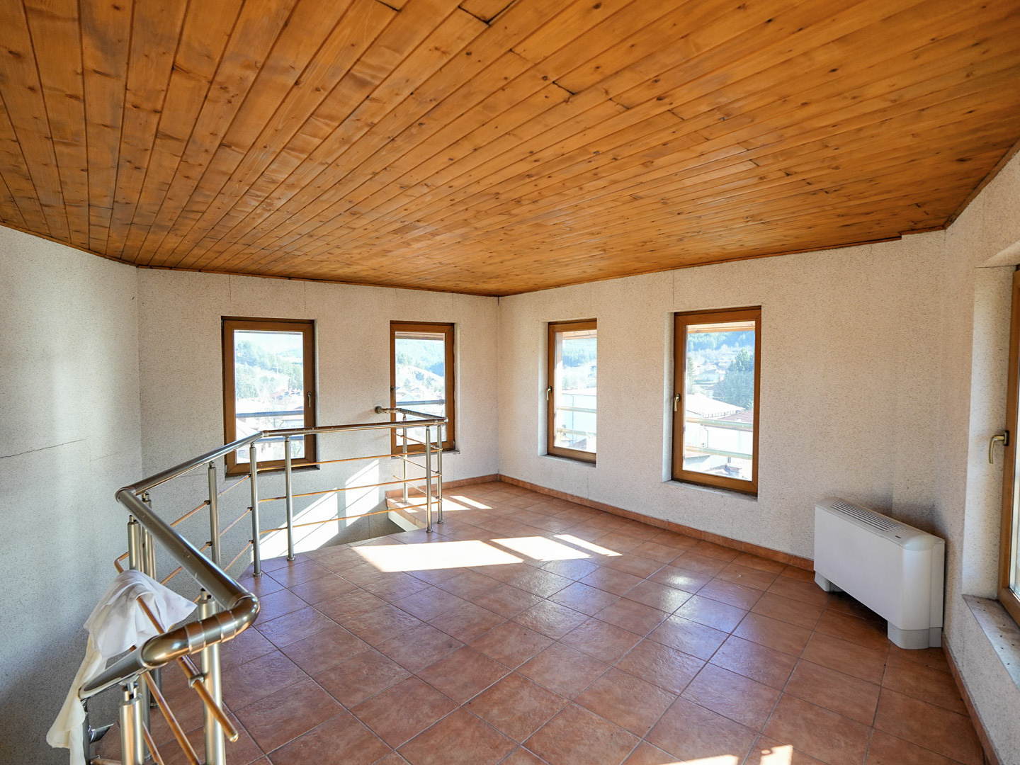 Отоплението е решено чрез котел на пелети с радиаторна система, което осигурява ниски и предвидими разходи. Форматът на имота позволява лесно управление и ефективна експлоатация без необходимост от голям персонал.