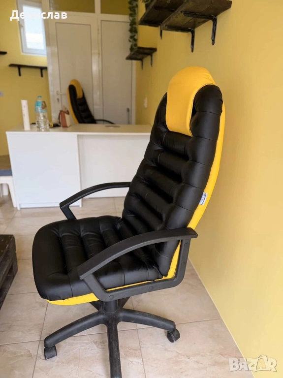 Офис стол еко кожа черно-жълт → Обява 53468843