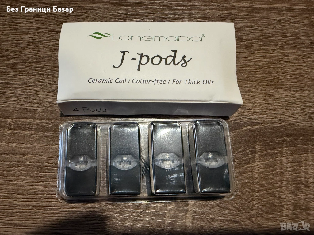 Комплект от 4 броя Longmada J-Pods с керамична намотка, без памук (cotton-free), предназначени за използване с по-гъсти масла. Осигуряват равномерно нагряване, чист вкус и по-дълъг живот на пълнителя благодарение на керамичната технология.