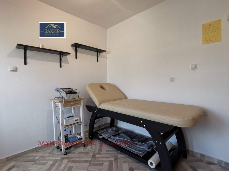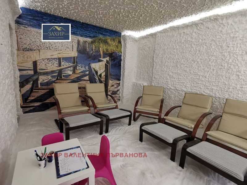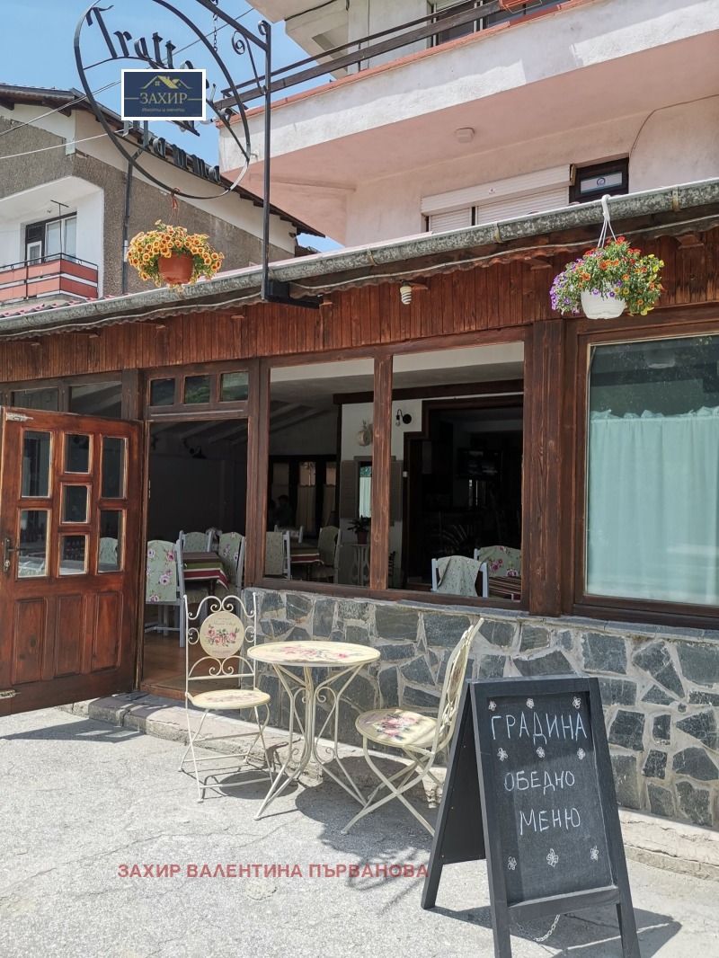 Прелагаме за прдажба уюутен семеен хотелски комплекс - стаи за гости, ресторантска част и медицински център. Намира се на централна улица в града. Разполага с две покрити парко места, двор, градина и барбекю. Площта на парцела е 360 кв.м. Рзгъната обща площ - 684кв.м.,застроената площ /партерен етаж/ е 210 кв.м., горните 3 етажа са по 158 кв.м. всеки. Избено помещение от 56 кв.м. На партерния етаж са разположени ресторант, кухня и складови помещения. Втория етаж е медицински център с рецепция, 4 кабинета и солна стая. На горните два етажа са разположени 2 апартамента, всеки с кухня и самостоятелна баня и тоалетна и общо 6 самостоятелни хотелски стаи, всяка от тях с баня и тоалетна.