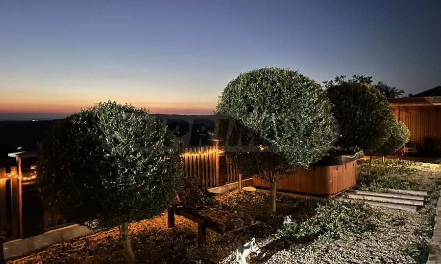 Имотът е с РЗП - 159 кв.м, със собствен двор с площ от 1300 кв.м с изградени: