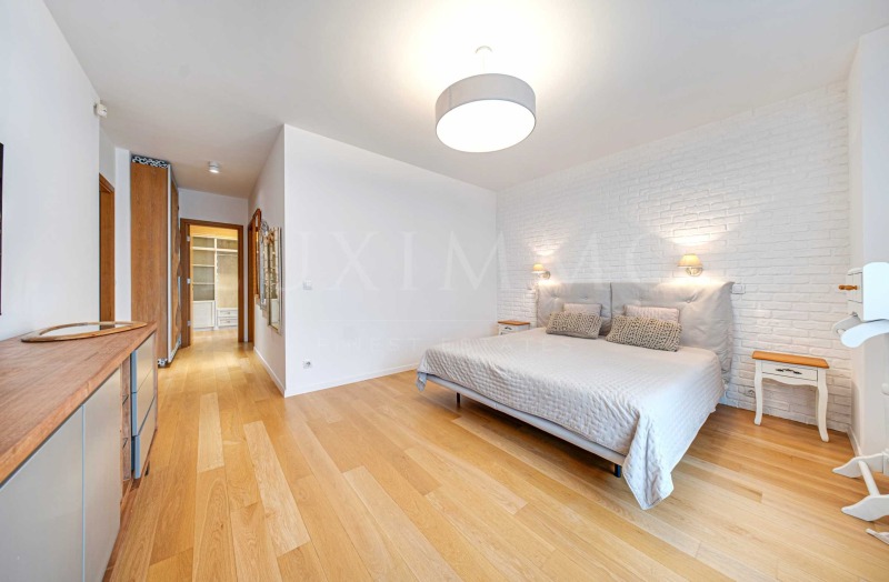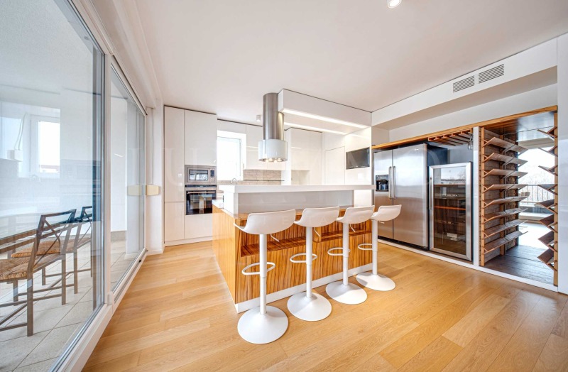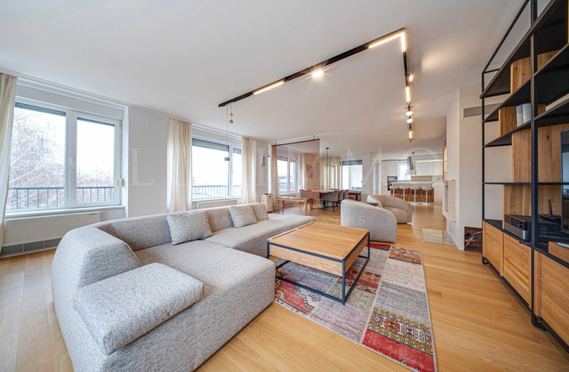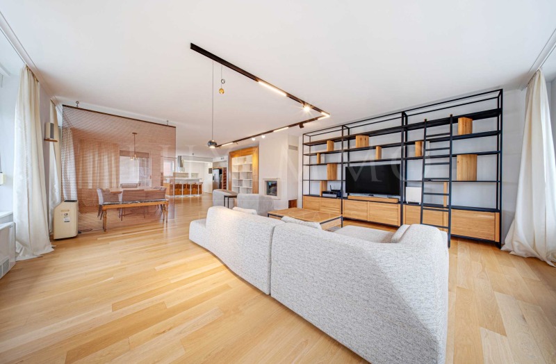 Апартаментът се отдава напълно обзаведен и след основен ремонт, като довършителните работи и обзавеждането са предимно от естествени материали, а голяма част от мебелите са уникати, изработени по поръчка на собствениците. Кухнята е отлично оборудвана, така че да отговори на изискванията на най-запалените кулинари - голям хладилник с фризер част, голям шкаф за вино, всички основни кухненски уреди, кухненски килер и голям кухненски остров с подвижен плот, за да може семейството да споделя повече време заедно. В дневната има функционираща камина. Просторната лоджия позволява семейството да прекарва повече ...