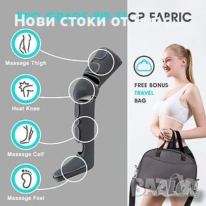 360°Компресионен масажор за крака, въздушно налягане, топлина лимфен дренаж+чанта 360° масажор за крака, въздушно налягане, топлина лимфен дренаж въздушно налягане на стъпалата насърчава кръвообращението. Масаж Мускулна болка, Облекчаване на коляното, Топлина лимфен дренаж. В комплекта е включена оригинална фирмена чанта за пренасяне/транспортиране, вижте на снимките. Много от нас прекарват много часове през деня седнали. Независимо дали сте на бюро и учите или работите в офиса, седенето за периоди от време може да доведе до стягане в краката. Ако искате да намалите дискомфорта в краката си, този масаж на краката е чудесен начин за облекчаване на болката и подобряване на кръвообращението. Това е лесен начин да масажирате краката си у дома или в офиса. Цялостен компресионен масаж за стъпала, прасци и бедра: Масажорът за компресия на краката е с вградени 10*2 въздушни възглавници, той симулира стискане на ръцете, за да компресира мускулите на прасеца и бедрата на краката ви чрез надуване и изпускане, облекчава умората на краката и подобрява кръвообращението, осигурява изживяване с дълбок мускулен масаж на целия крак. Може да помогне за освобождаване на стегнатите мускули и стреса, премахване на мускулни спазми, болка в стъпалата и краката. Нива на топлина, 3 интензитета и 3 режима: Масажорът за крака се предлага с 3 интензитета (нисък-среден-висок), 3 режима на масаж, които са натискане, месене и шиацу, разполага с опционална функция за нагряване на 2 нива (ниско/високо) на коляното за насърчаване на циркулацията, също може да го изключи отделно. LCD ръчният контролер е много прост и лесен за промяна на режимите и интензивността, можете да се насладите на персонализирано масажно изживяване в зависимост от личните предпочитания. РЕГУЛИРУЕМ РАЗМЕР С УДЪЛЖЕНИЯ ЗА РАЗМЕРА: Масажорът за крака и стъпала с регулируемо велкро, максимален размер на прасеца може да бъде до 69,85 см., а бедрата до 85,09 см., дължина на частта на стъпалото до 28 см., с включени 2 удължителя за размер за различни хора. Ако сте прекалено стегнати, първо изберете най-ниската интензивност, препоръчва се да оставите празнина, за да поставите 4 пръста в нея. Ако е твърде хлабаво, моля, завържете го малко по-здраво и изберете по-висок интензитет. Страхотен подарък и дишащ материал: Масажорът за крака и стъпала използва чифт подвижни и миещи се вътрешни слоеве. Поддържа се много лесно и се поддържа чист между употребите. Този масажор за крака и стъпала може да се използва у дома или в офиса, би бил чудесен подарък за хора от всички възрасти за рожден ден, Деня на майката, Деня на бащата, Деня на благодарността и Коледа.