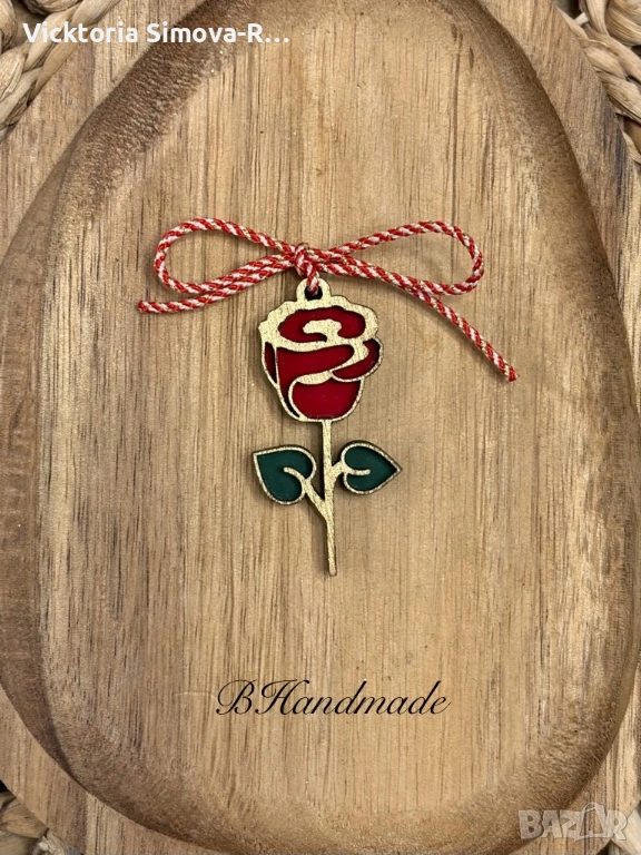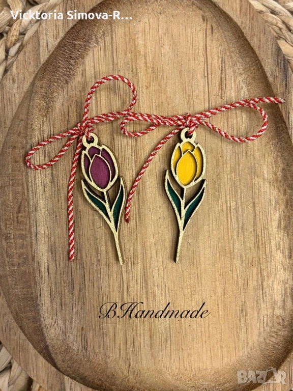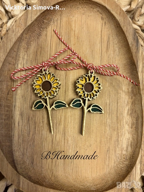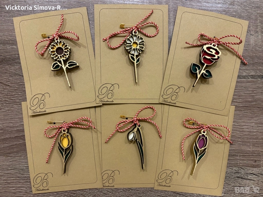 Ръчно изработени, дървени мартенички-цветя - размер 5см.