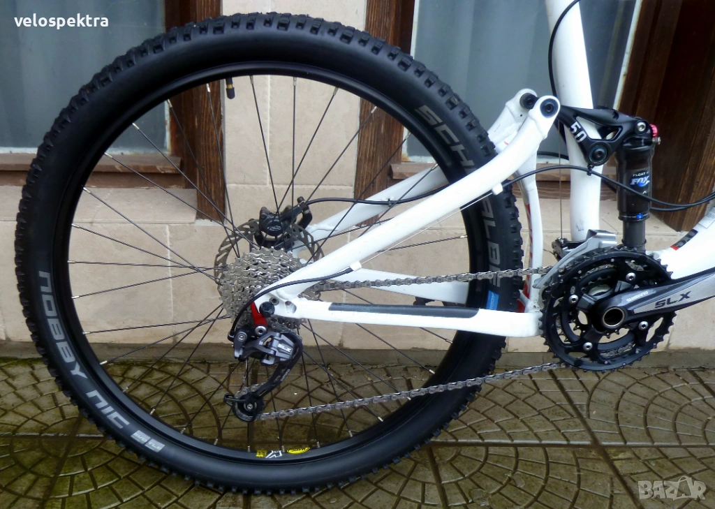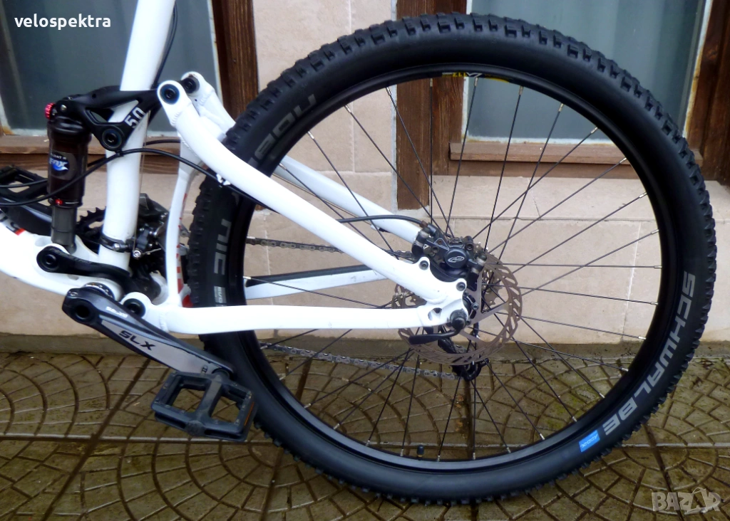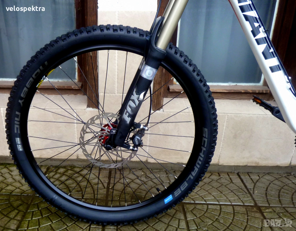 26 цола двойностени капли Мавик с проходни оси , главини със супер лек ход Мавик , предна ос 15 мм. задна ос 10 мм. , кевларени гуми МТВ Шваубе 26" 2.3.