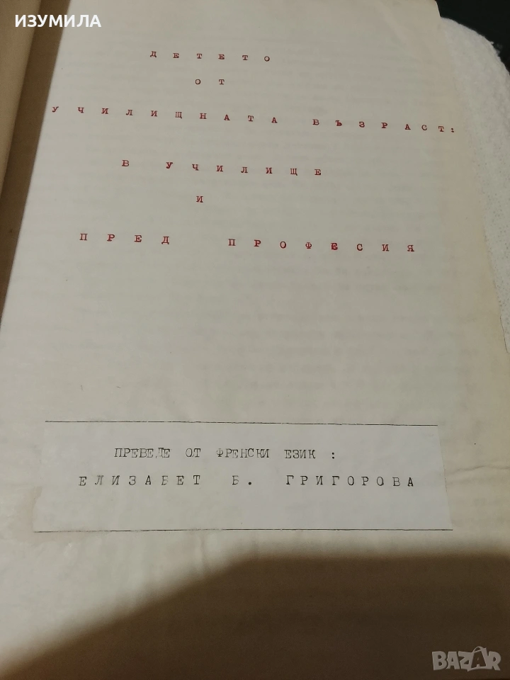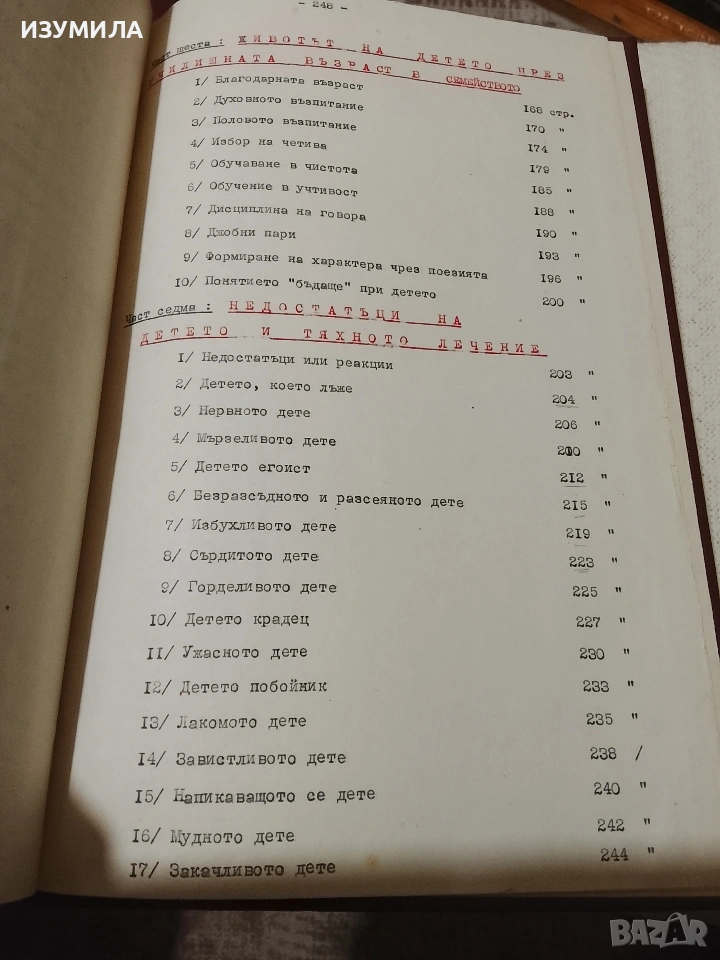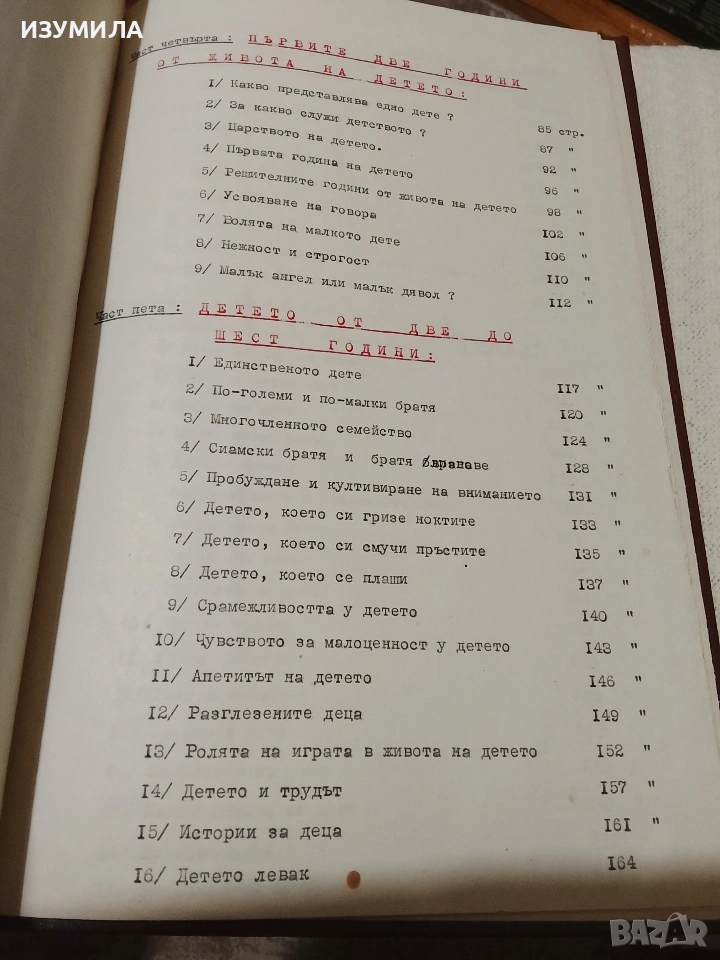 Двата тома събират безценния опит от последните петнайсет години на френския психолог и педагог Морис Тиеш . Тъй като този труд не е издаван на български език , някой си е поставил за цел да го преведе от френски на български собственоръчно, всяка страница е напечатана на ръка ( общо 800 стр.) и са подвързани професионално в два тома, голям формат с твърди корици. Прилагам снимки на съдържанието на двата тома.