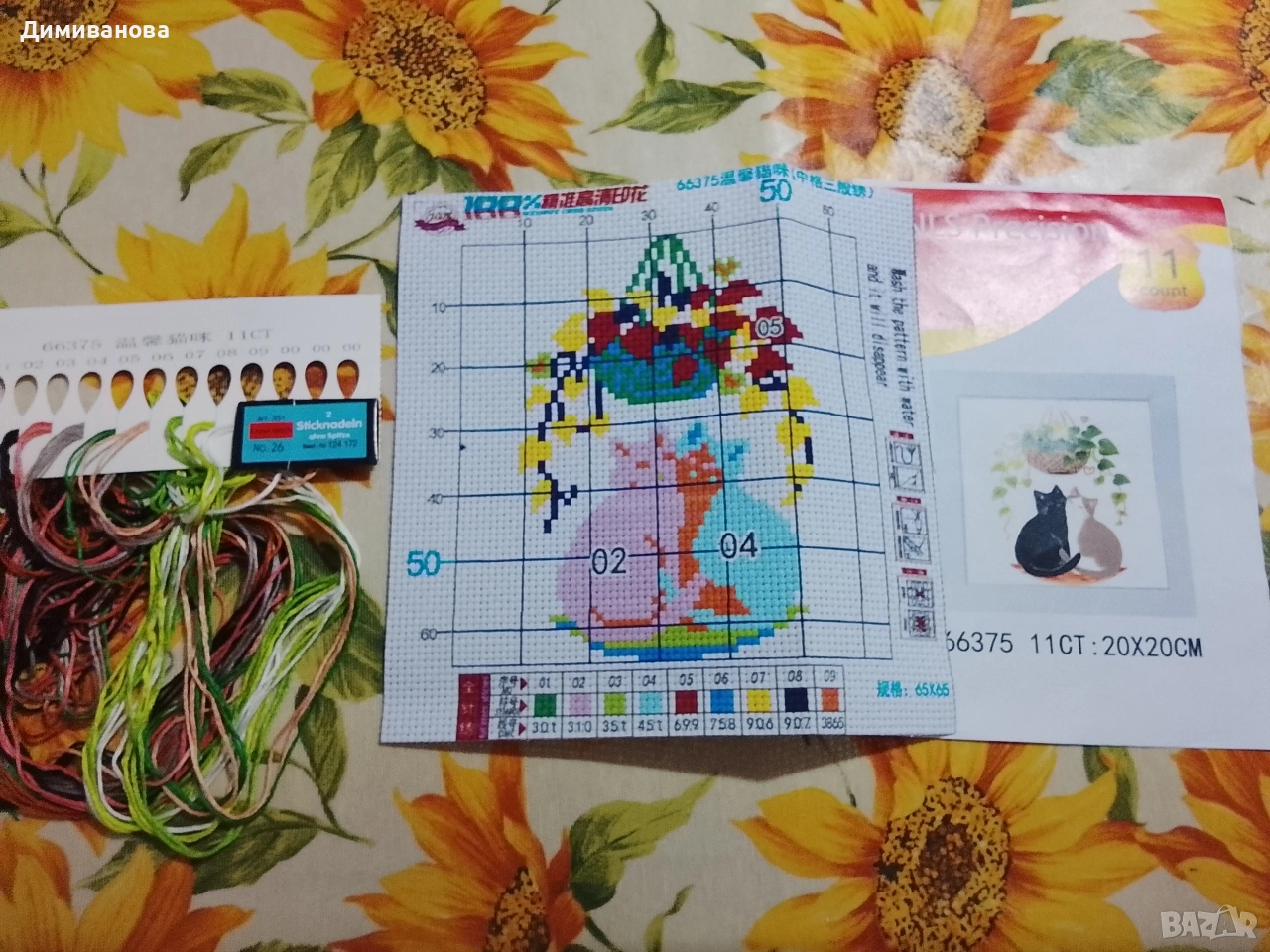 Гоблен за бродиране, Щампа с две котета → Обява 53470457