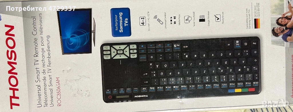 Това e Thomson универсално дистанционно управление за Smart Samsung TV с вградена клавиатура.