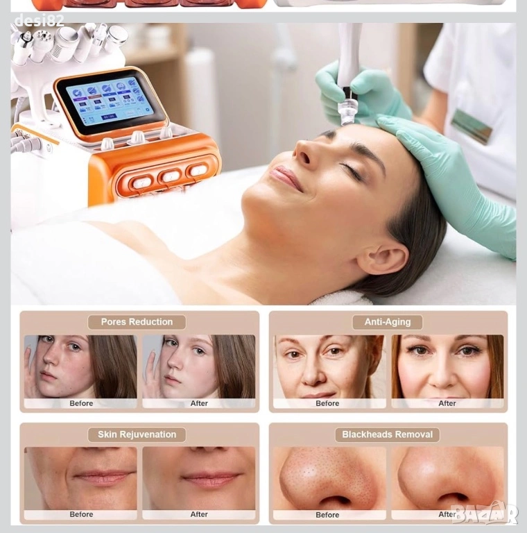 4) Водно дермабразио: почиства кожата, прави пилинг, почиства порите.