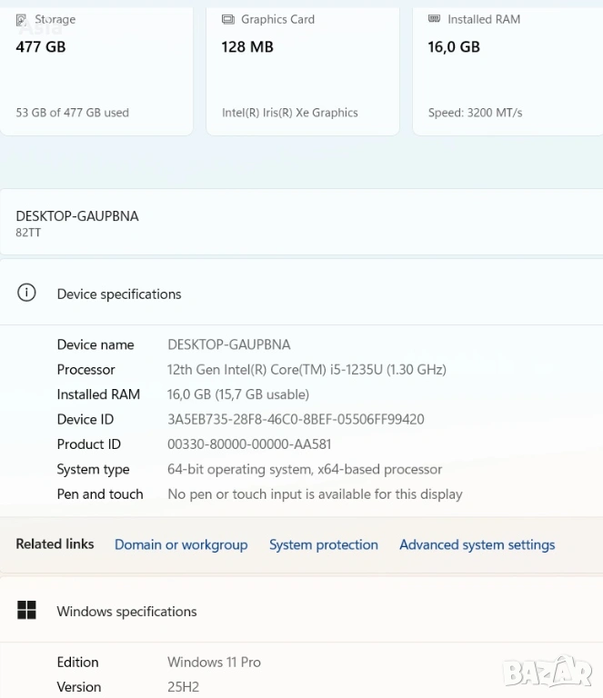 Продавам Lenovo V15 G3 IAP в много добро техническо и визуално състояние. Подходящ за работа, обучение, офис приложения, интернет и мултимедия.