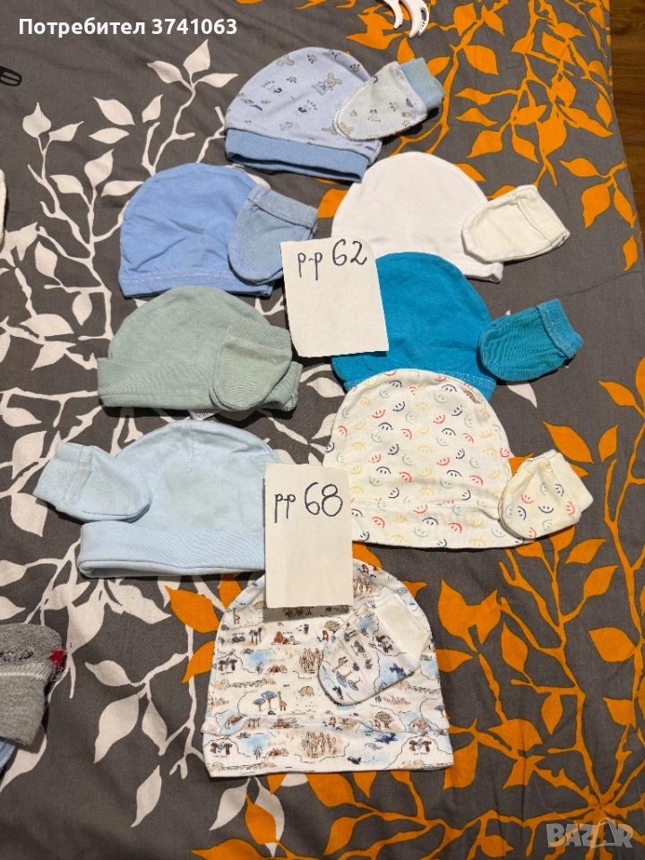 Лот с бебешки шапки и ръкавички → Обява 53470748