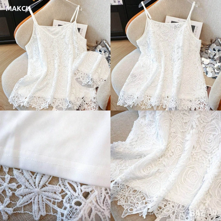 Макси разкошен елегантен силно еластичен мек и красив дантелен потник с коригиращи се презрамки и фина подплата в снежно бяло