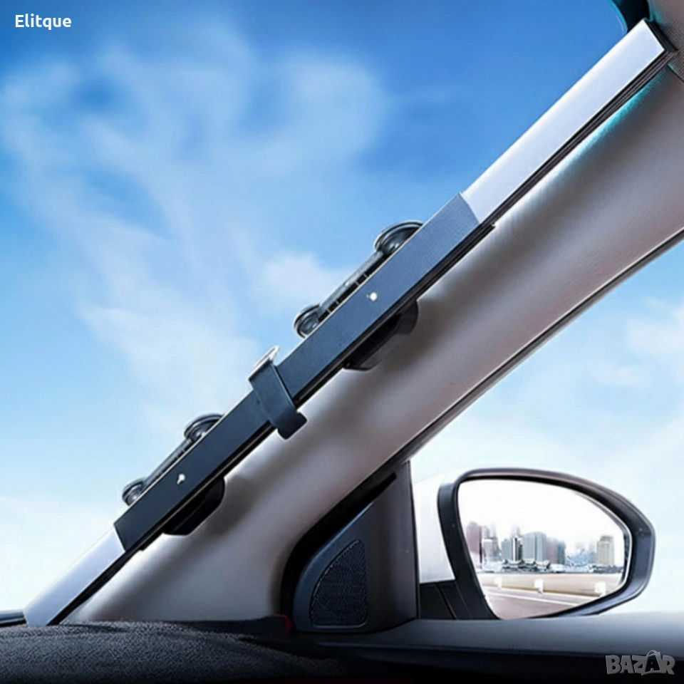 Технически характеристики на Сенник с UV защита Точни спецификации за уверен избор. Размери: 155 см x 65 см — идеален за предно стъкло на малки и средни автомобили, подходящ и за по-големи при частично покриване или кастъм изрязване. Материал: алуминиеви сплави и разтеглива полилиния — съчетание от здравина и лекота. Прилягане: регулируемо, подходящо за коли, камиони, ванове и SUV. Преносимост: сгъваем и компактен за лесно съхранение и пренасяне. Монтаж: вендузи и монтажен профил за бързо закрепване и сигурност по време на паркиране.
