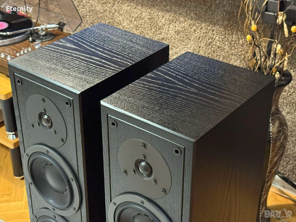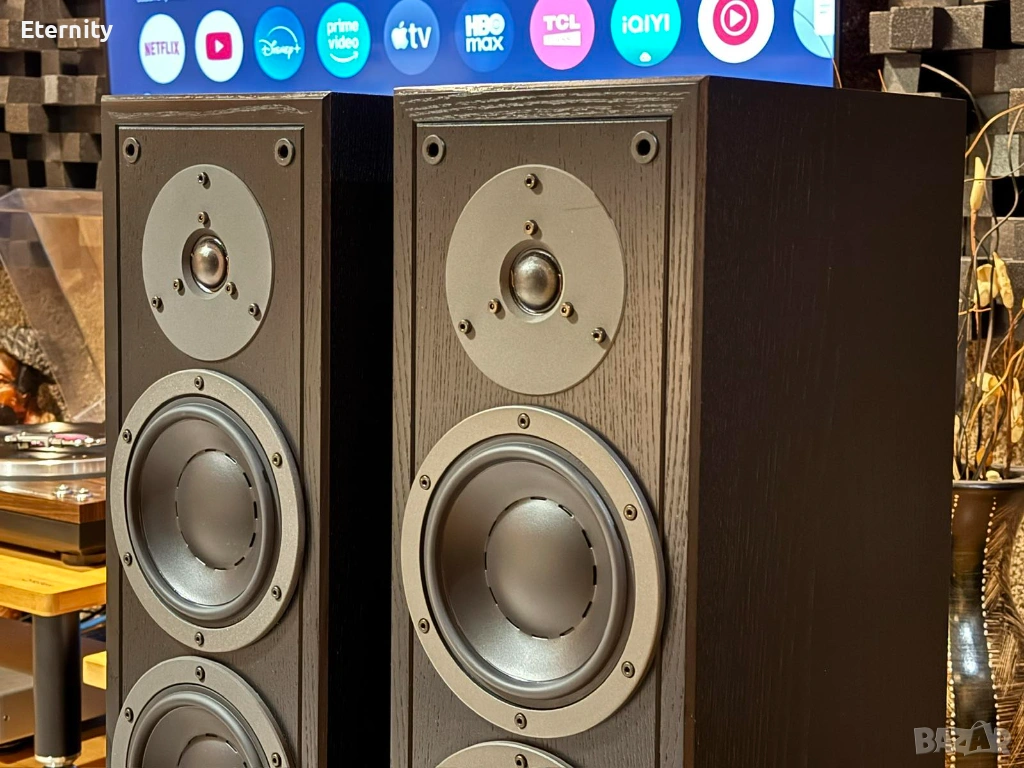 Басът е стегнат, добре оформен и много музикален. Въпреки че имат два 17см. нискочестотни говорителя, те са способни на изненадващо дълбок и мощен бас благодарение на добрата конструкция на кабинета.