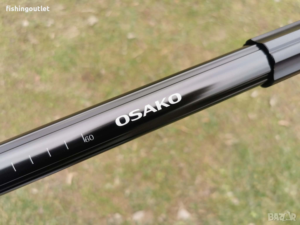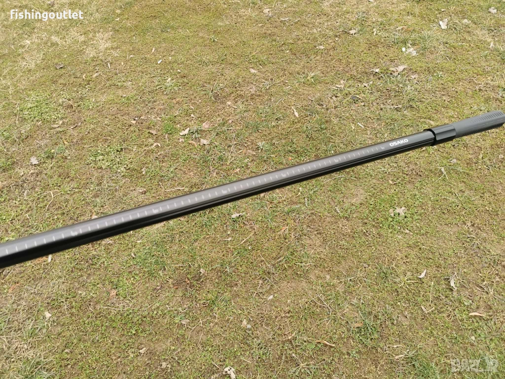 Дръжката е телескопична, от две части. Отвън е нанесена скала за измерване дължината на улова (до 60 см).