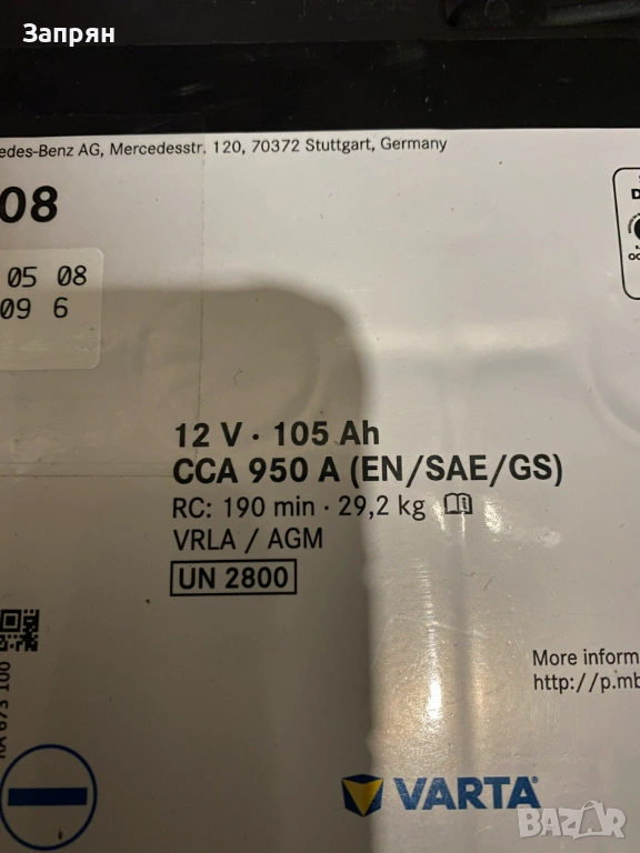 Оригинален Мерцедес/Mercedes акумулатор 105 амп/ч АГМ/AGM Varta/Варта, снимка 1 - Аксесоари и консумативи - 53472309 Оригинален Мерцедес/Mercedes акумулатор 105 амп/ч АГМ/AGM Varta/Варта, снимка 2 - Аксесоари и консумативи - 53472309 Оригинален Мерцедес/Mercedes акумулатор 105 амп/ч АГМ/AGM Varta/Варта, снимка 3 - Аксесоари и консумативи - 53472309 Оригинален Мерцедес/Mercedes акумулатор 105 амп/ч АГМ/AGM Varta/Варта, снимка 4 - Аксесоари и консумативи - 53472309 Оригинален Мерцедес/Mercedes акумулатор 105 амп/ч АГМ/AGM Varta/Варта, снимка 5 - Аксесоари и консумативи - 53472309 1/5