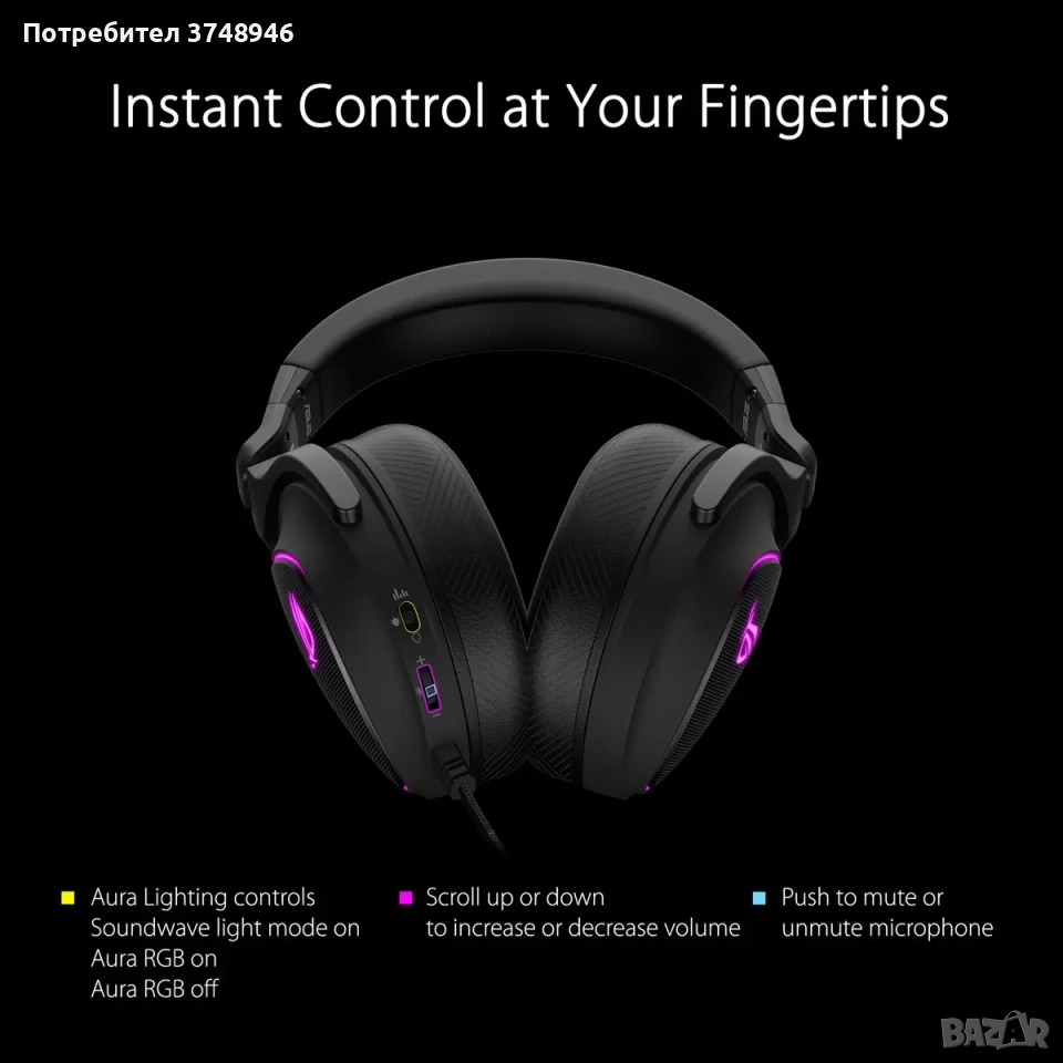 Контрол на звук, микрофон и RGB директно от слушалките/кабела.