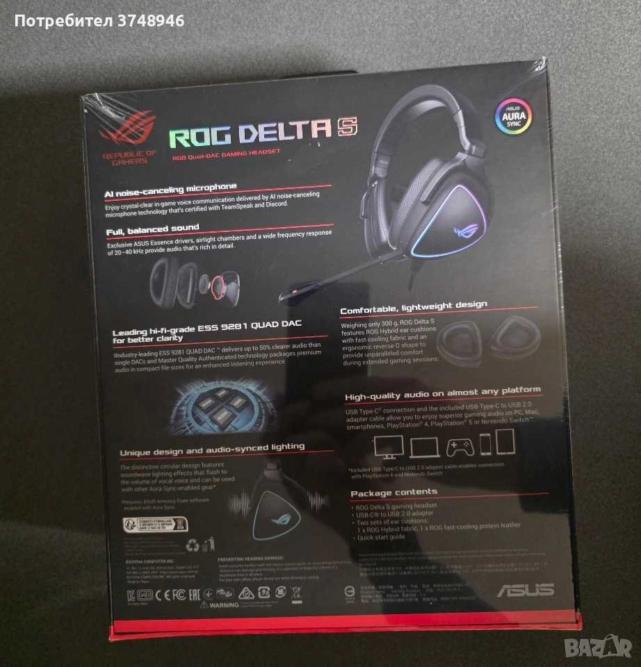 USB-C конектор – свързване към PC, Mac, конзоли (PlayStation, Nintendo Switch) и мобилни устройства.