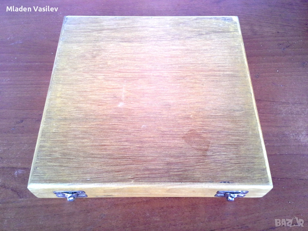 Шахматен комплект закупен в Тайланд за 70$. Неизползван. Махагонова кутия с размер 26см. Велурена облицовка отвътре. Керамични фигури. Размер на царя 5см.