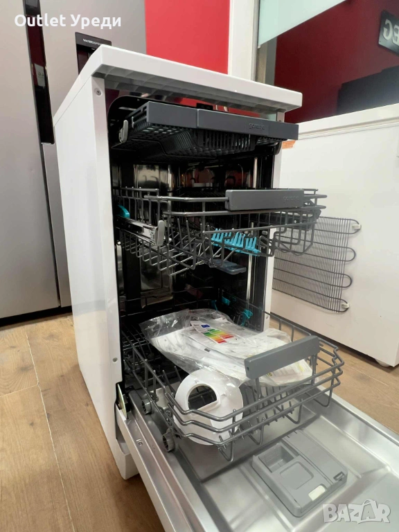 Моделът разполага с 5 програми за миене, включително Eco, Auto, Intensiv, 1-часова програма и програма за деликатно почистване на стъкло, както и инверторен PowerDrive мотор за по-ефективна и тиха работа. Функцията SpeedWash позволява бързо измиване за 15 минути, а опцията TotalDry автоматично отваря вратата за по-добро сушене на съдовете.